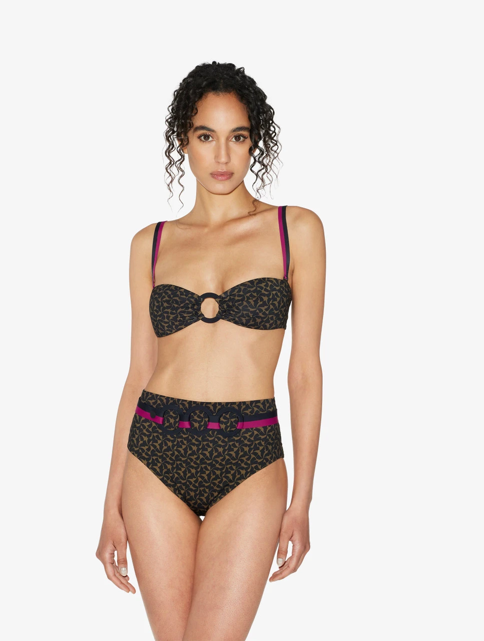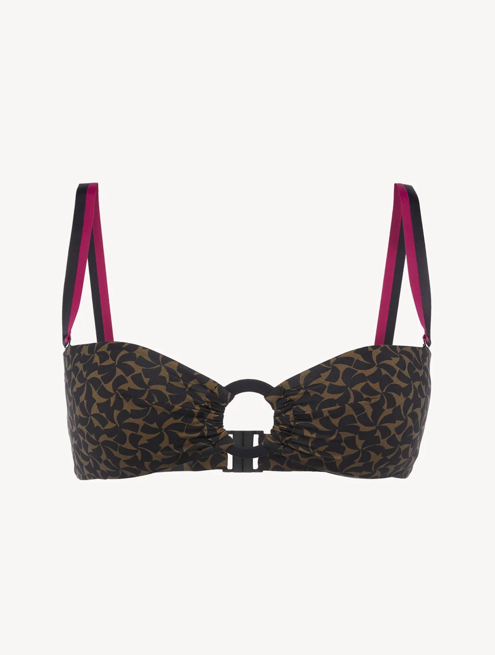 Rencontre parfaite entre une silhouette impeccable et une coupe magnétique, le soutien-gorge de bain bandeau Summer Winds est ici disponible dans un imprimé raffiné décliné dans des tons de vert foncé et de noir. Réinterprétation contemporaine d’un classique indémodable, ce modèle bandeau sans armatures est valorisé par un fascinant détail d’anneau et des coussinets amovibles, qui procurent un mélange extraordinaire de confort et d’élégance sublime. Associez-le au bas de maillot de bain taille haute avec ceinture ou au bas de maillot de bain taille basse coordonnés, pour un look de plage irrésistible.