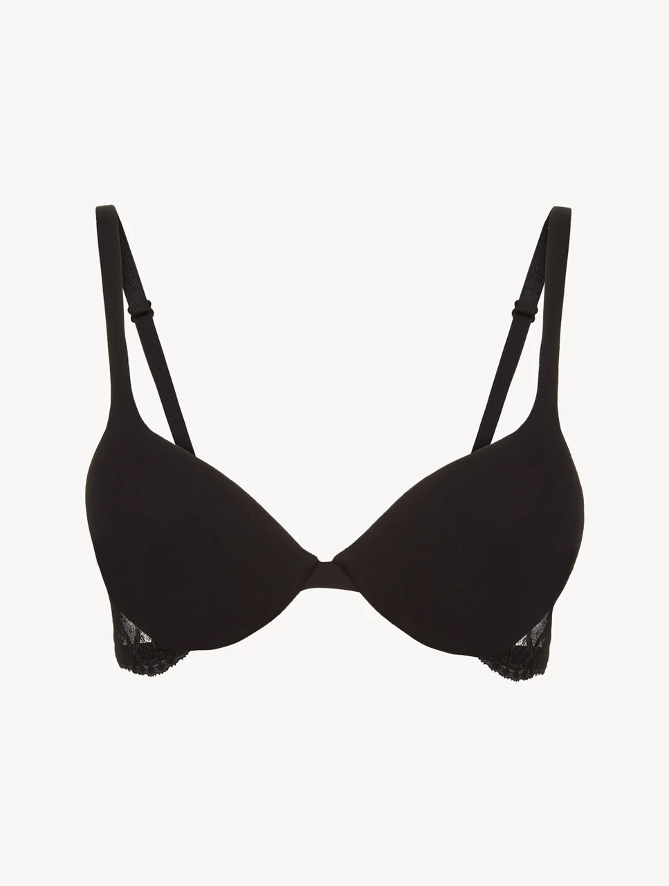 Soutien-gorge push-up avec bonnets recouverts de jersey de coton stretch. Les côtés sont en dentelle Leavers stretch à motifs floraux.