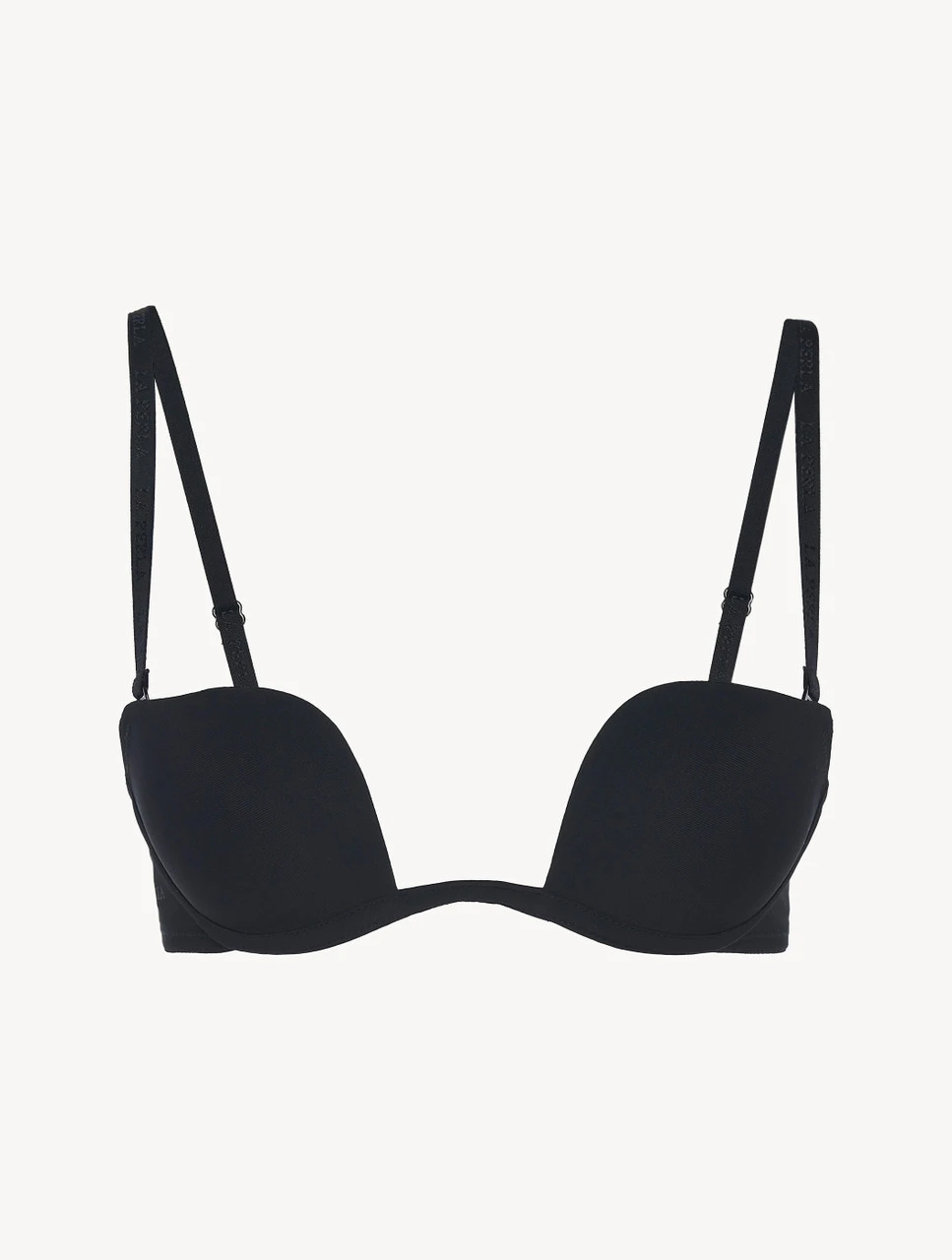 Soutien-gorge avec armature. Particulièrement indiqué pour les robes décolletées grâce à ses bonnets séparés et préformés avec rembourrage interne ce soutien-gorge a des bretelles amovibles qui peuvent être agrafées de quatre façons différentes.