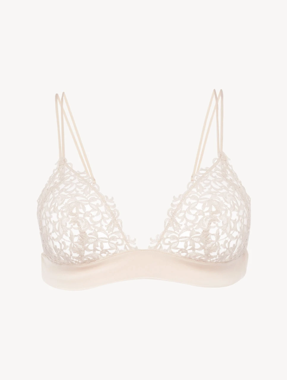 Précieux soutien-gorge triangle en macramé avec finition en georgette de soie stretch. Made in Italy.