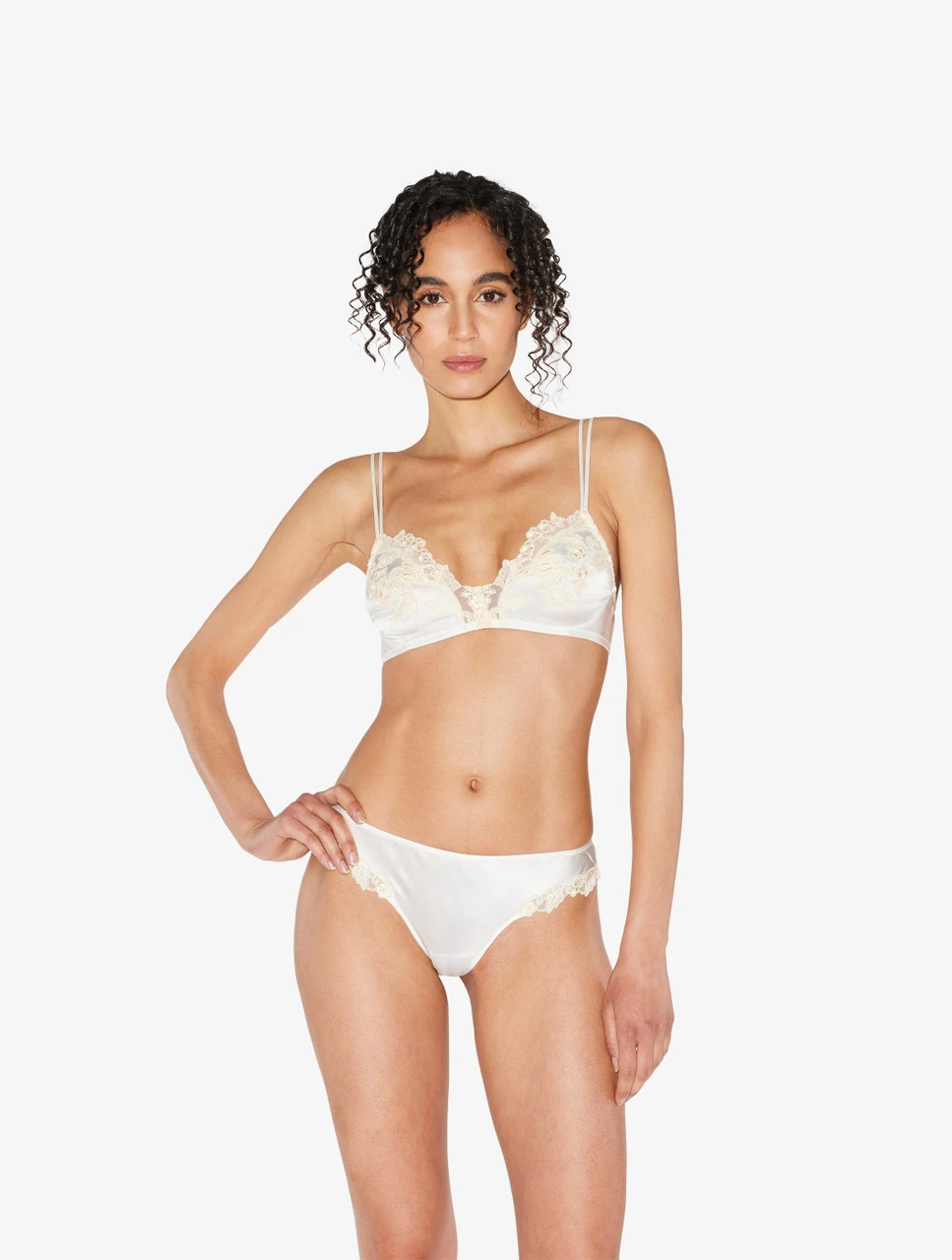- Soutien-gorge triangle en soie rehaussée de guipure à «frastaglio»