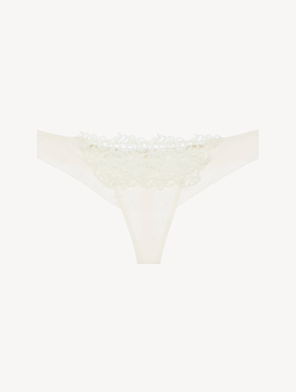 String en Lycra® ultra léger enrichi d’éléments recherchés en macramé appliqués par guipures «frastaglio».